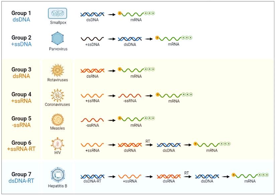 Les deux grandes classifications des virus connues et acceptables par la communauté scientifique et qui permettent de retrouver tous les espèces virales sont celles de ICTV et celle de BALTIMORE.