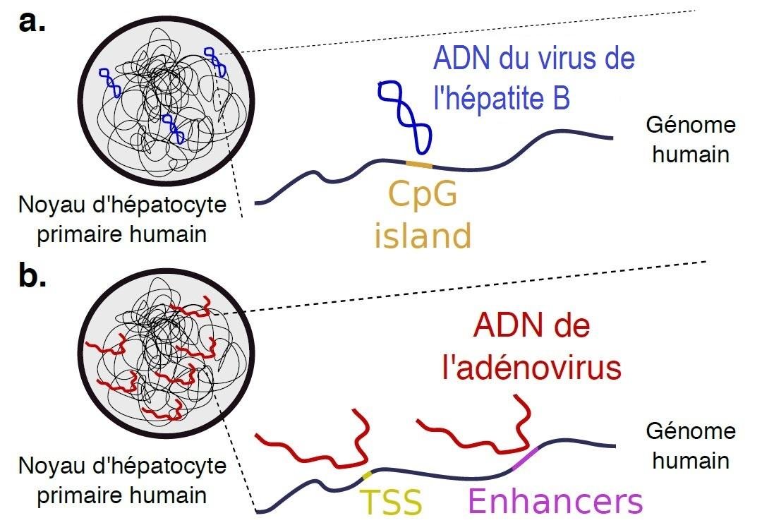 il s’agit de : Herpèsvirus (ADN), Adénovirus (ADN), Papovavirus (ADN, incluant HPV et SV40), Hépadnavirus (ADN, comme VHB), Rétrovirus (ARN, comme HTLV-1) et Hepacivirus (ARN, comme VHC).