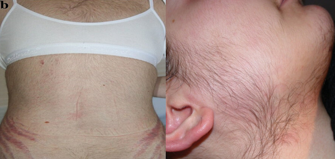 NB. Lorsque l’hirsutisme s’accompagne des signes de masculinisation évoqués ci-dessus, on parle de virilisme et ne doit pas être confondu avec l’hypertrichose qui se caractérise par une augmentation de la pilosité au niveau des zones habituelles.